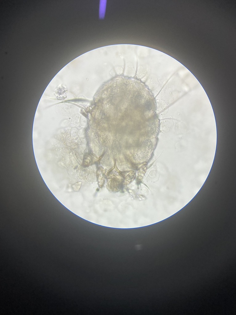 Làm xét nghiệm soi tìm cái ghẻ dưới kính hiển vi