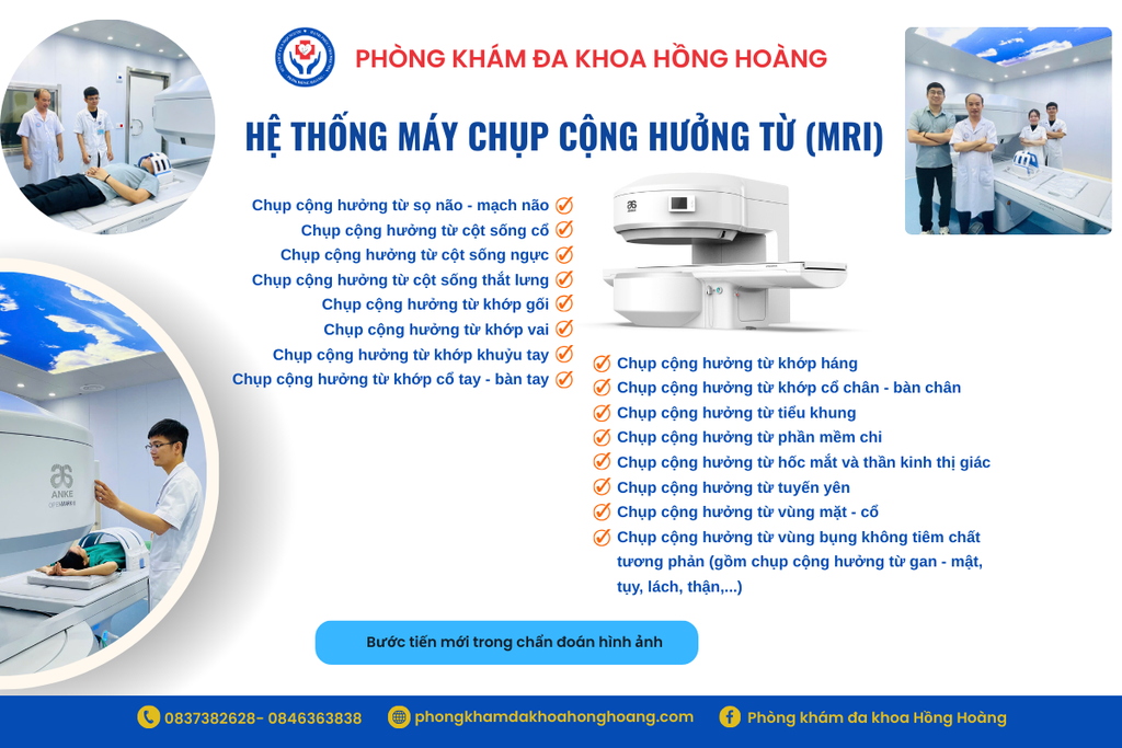 - Chụp cộng hưởng từ MRI: chụp sọ nào - mạch máu, cột sống cổ, cột sống ngực, cột sống thắt lưng, khớp gối, khớp vai, khớp khủy tay, khớp cổ tay - bàn tay, khớp háng, khớp cổ chân - bàn chân, tiểu khung, phần mềm chi, hốc mắt và thần kinh thị giác, tuyến yên, vùng mặt - cổ,...