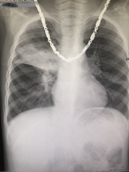 Vừa rồi Hồng Hoàng khám và điều trị cho bệnh nhân nhi 5 tuổi với triệu chứng sốt, ho. Sau quá trình khám bệnh, nghe tim phổi, cho làm xét nghiệm máu và chụp x-quang tim phổi nhận thấy cháu bị viêm phổi thùy. Bác sĩ đã cho cháu đơn thuốc điều trị phù hợp.