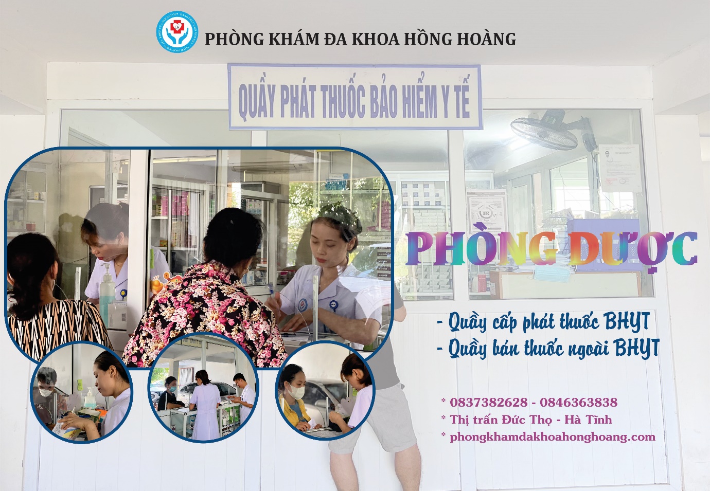 Phòng khám đa khoa Hồng Hoàng vừa cấp phát thuốc bảo hiểm y tế, vừa có quầy bán thuốc ngoài bảo hiểm y tế.