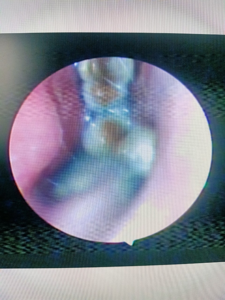 Qua nội soi, bác sĩ phát hiện trong hốc mũi trái của bệnh nhân có một khối rất cứng, sù sì. Bác sĩ chẩn đoán chị H bị sỏi rất hiếm gặp vùng mũi. Ngay sau đó, bác sĩ đã hút dịch xung quanh để kiểm tra và xử lý.